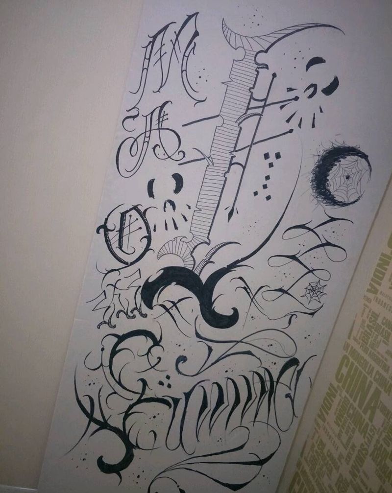 当前位置: 首页 >江苏省盐城市纹身店-十三刺青纹身图案>花体手稿纹身图片_原创手稿纹身图案