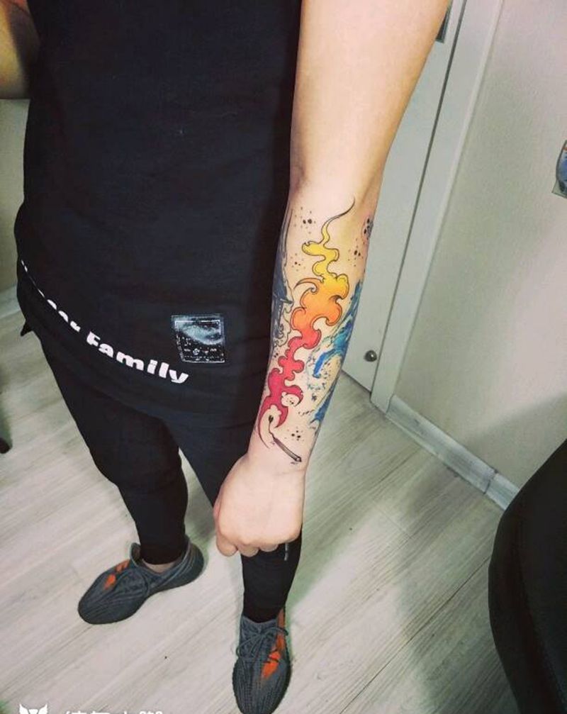 添加花体火焰!纹身图片_手臂欧美原创成品纹身图案