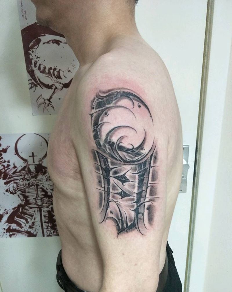 • 纹身吧推荐的披肩图腾半胛纹身图案作品展示