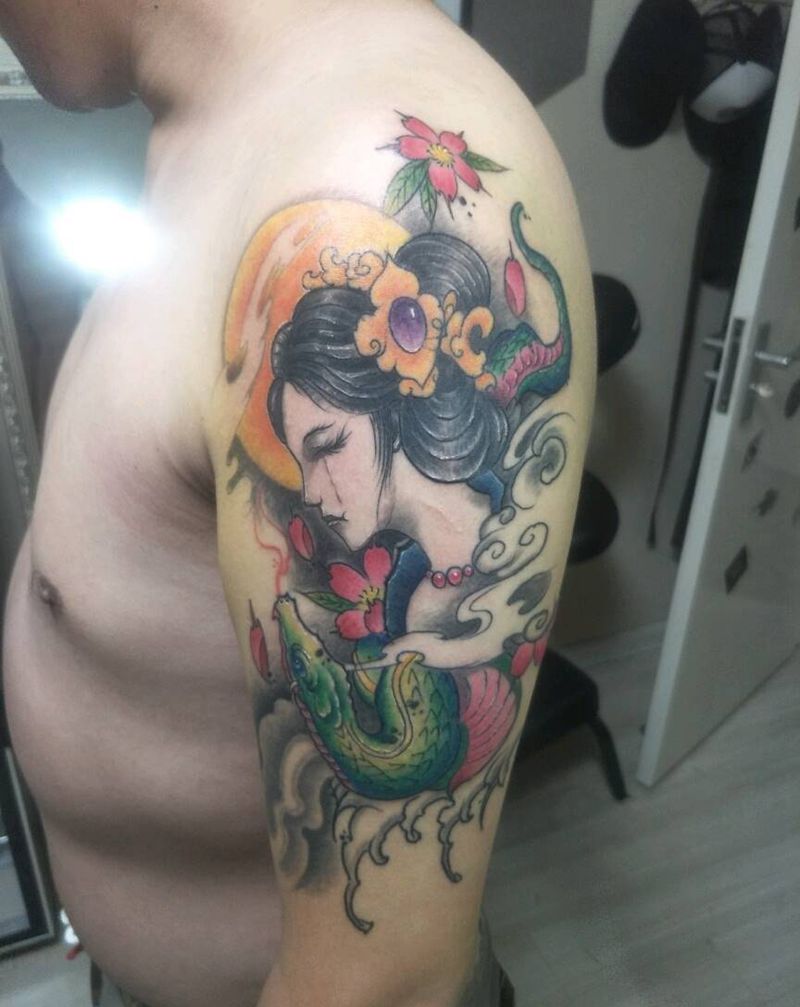 当前位置: 首页 >江苏省盐城市纹身店-十三刺青纹身图案>蛇姬纹身图片_手臂传统成品纹身图案