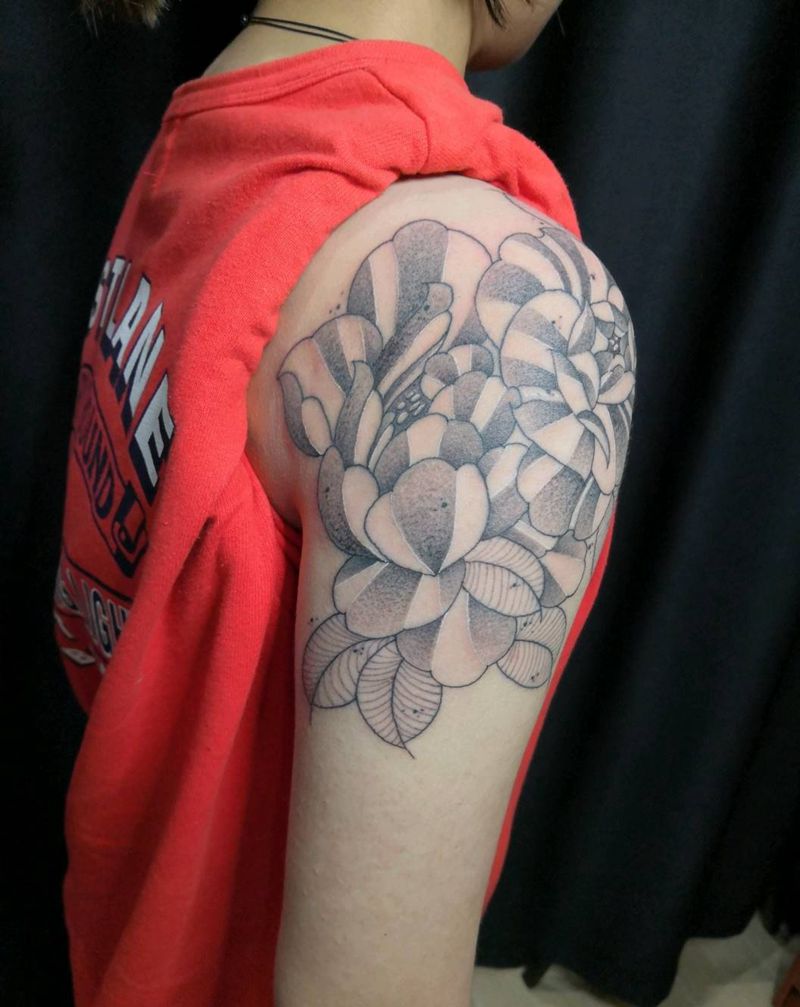 • 女性大花胸纹身_43张霸气漂亮的女性大花胸纹身图案作品