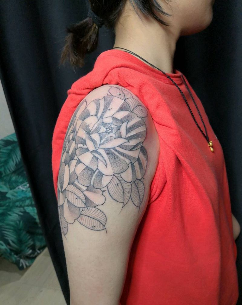 • 女性大花胸纹身_43张霸气漂亮的女性大花胸纹身图案作品