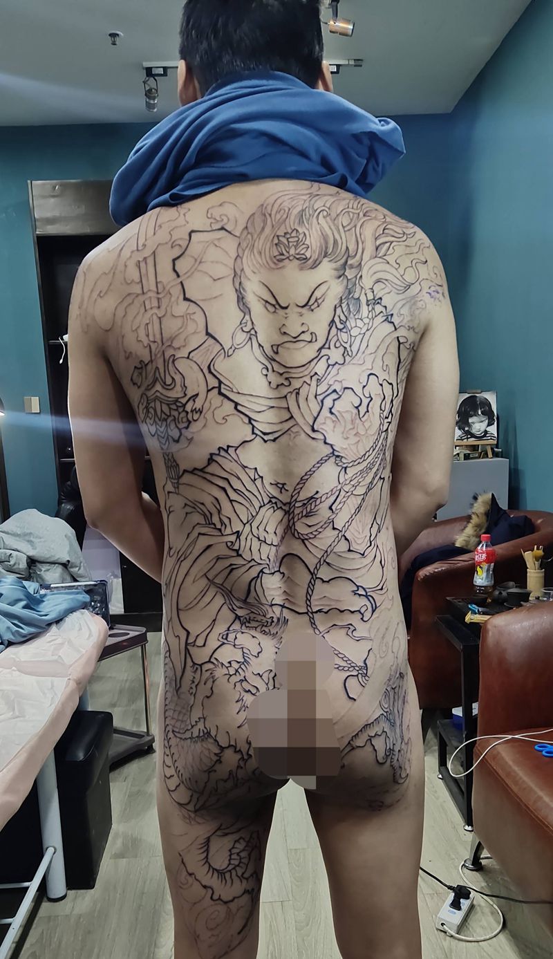 黑灰满背纹身图案