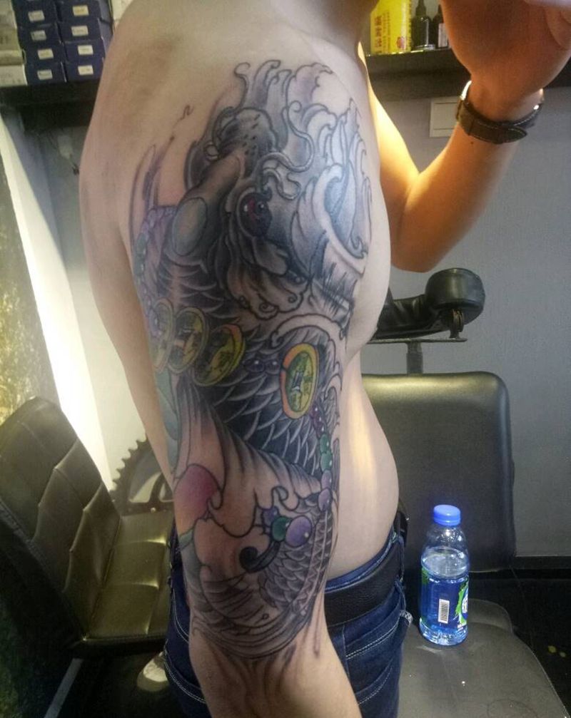 当前位置: 首页 >江苏省淮安市纹身店-火刺青纹身图案>招财锦鲤纹身图片