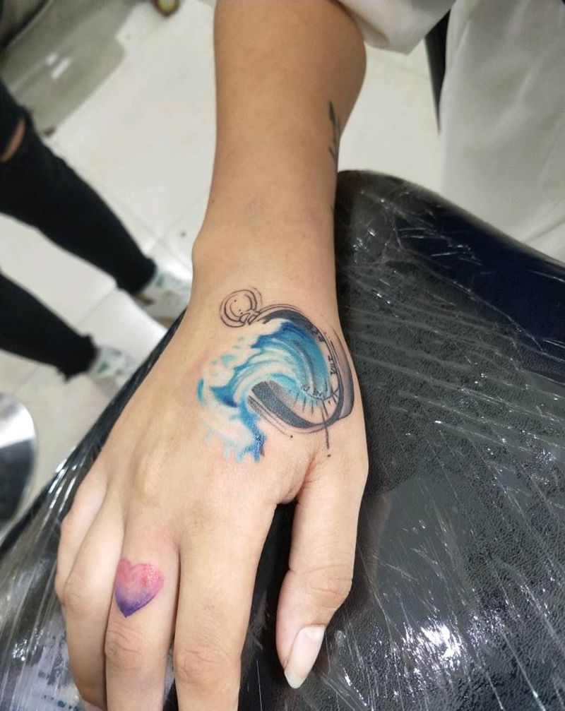 小海浪遮盖英文字母纹身图片_手部纹身图案