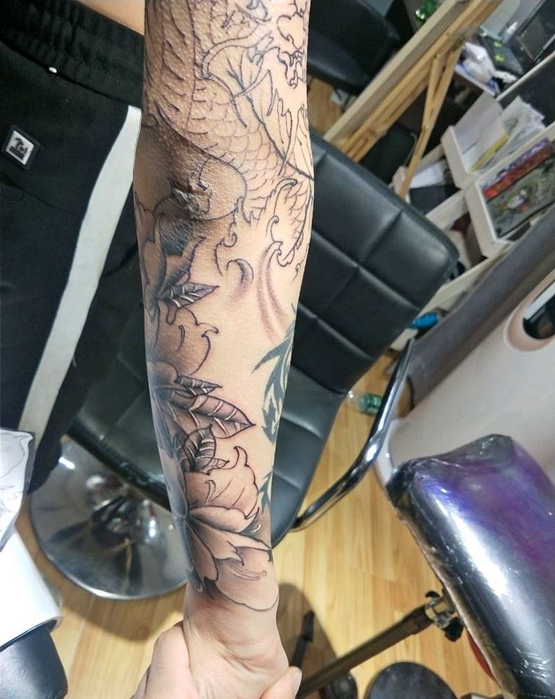 当前位置: 首页 >江苏省淮安市纹身店-火刺青纹身图案>花臂拼劲遮盖纹身图片