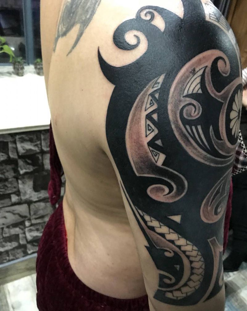 • 纹身吧推荐的披肩图腾半胛纹身图案作品展示