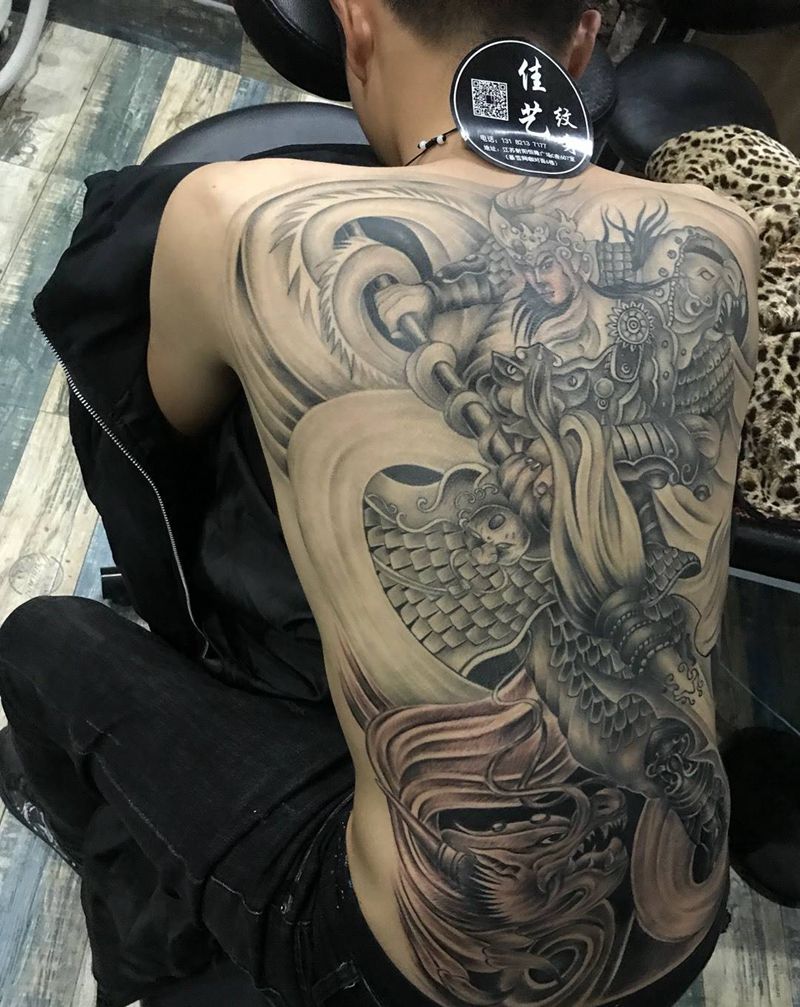 • 黑灰满背纹身图案