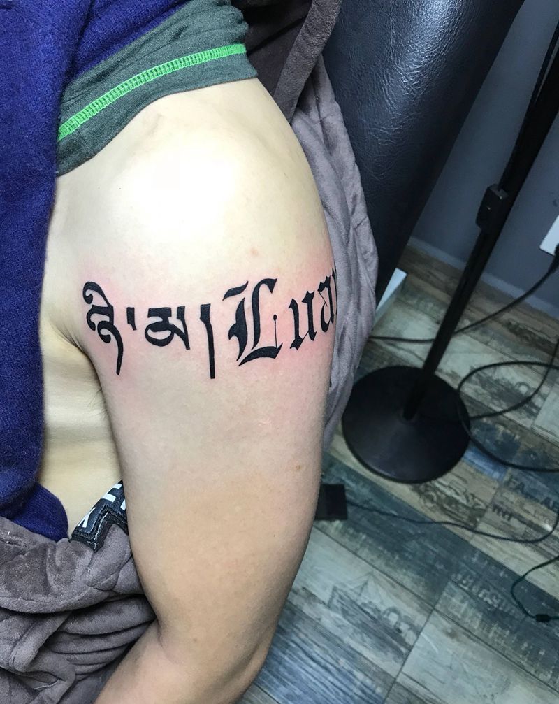 当前位置: 首页 >江苏省盐城市纹身店-佳艺纹身纹身图案>藏文体加哥特式纹身图片