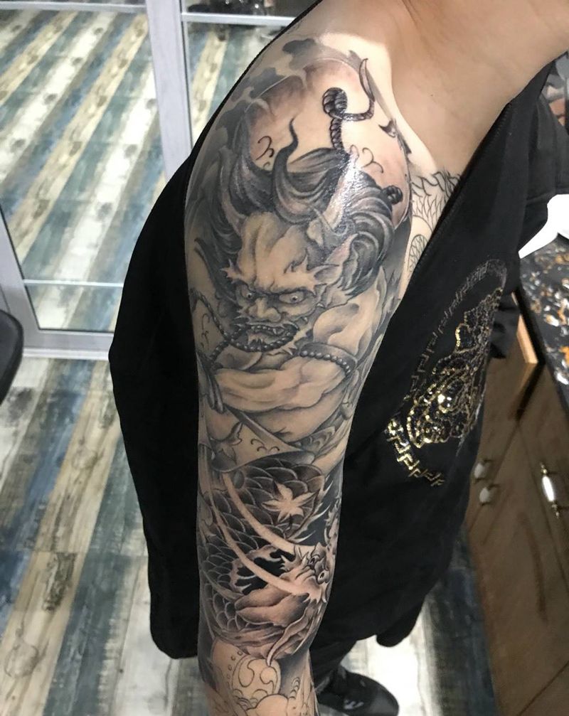 当前位置: 首页 >江苏省盐城市纹身店-佳艺纹身纹身图案>花臂风雷神纹身图片