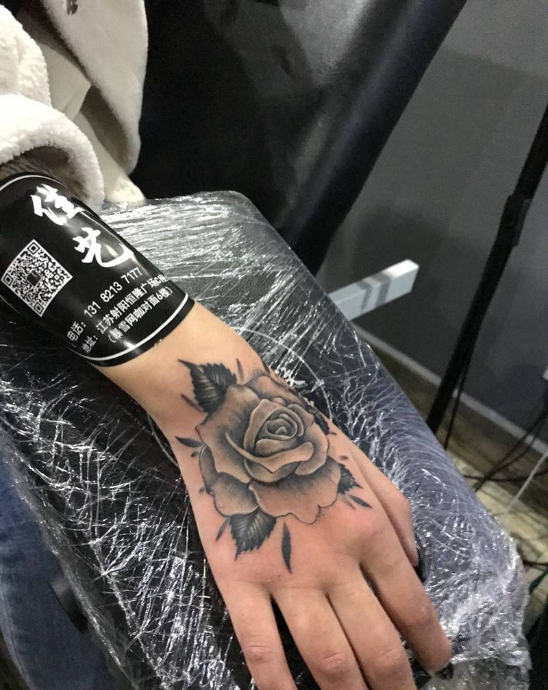 • 手背潮流时尚的玫瑰花眼睛纹身图案