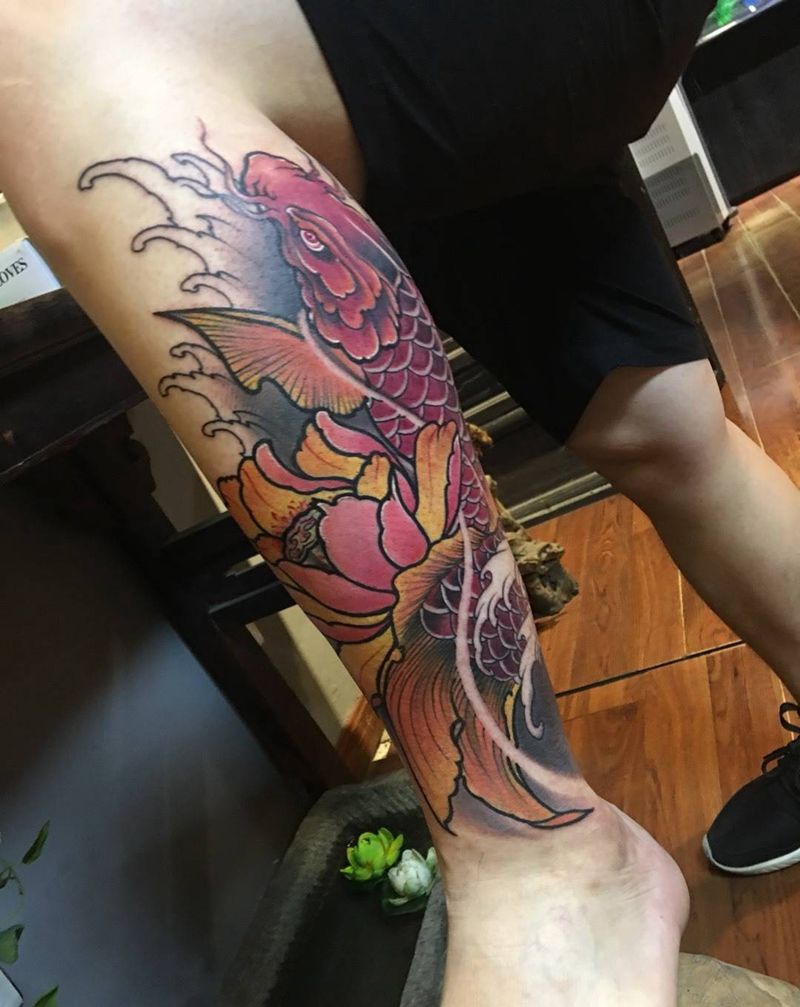 • T网红王老大花腿龙纹身图片_腿部新传统纹身图案