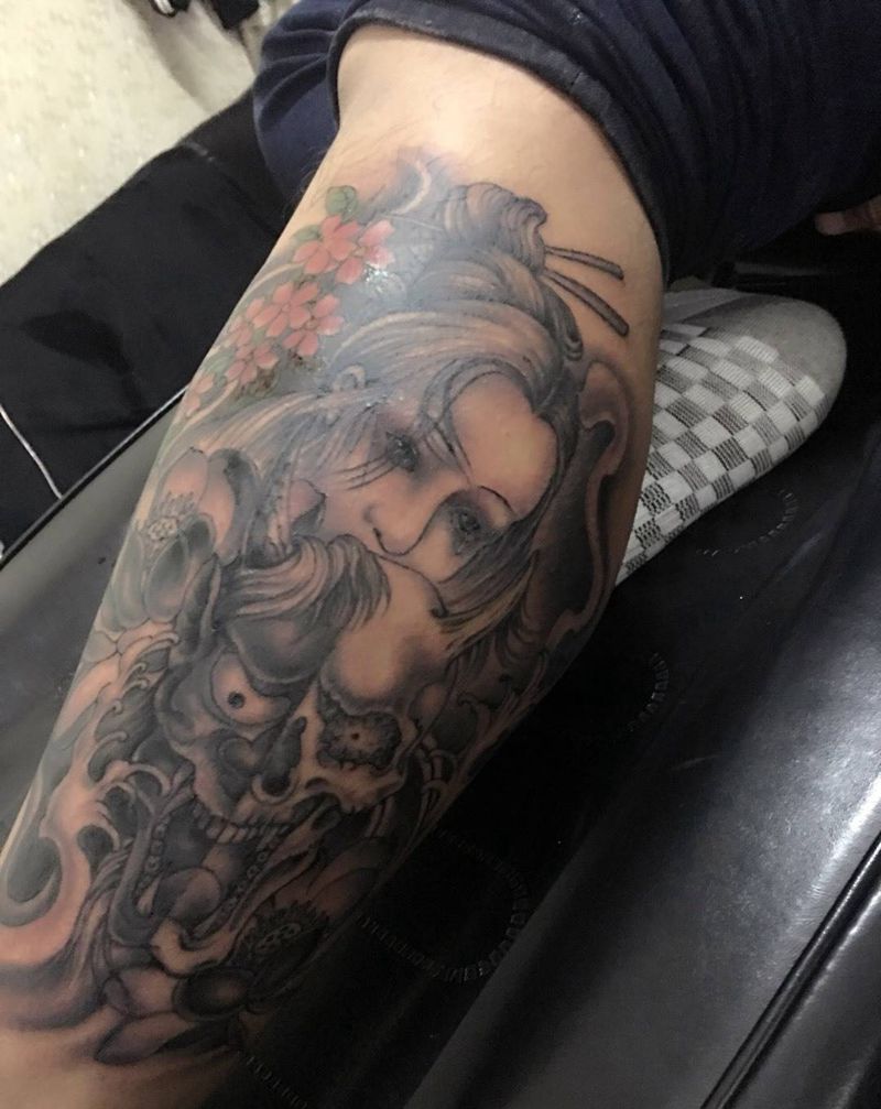 当前位置: 首页 >江苏省盐城市纹身店-奇文纹身纹身图案>艺妓鬼头纹身图片