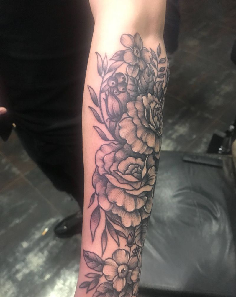 当前位置: 首页 >江苏省盐城市纹身店-鸣艺刺青纹身图案>素花手臂纹身图片