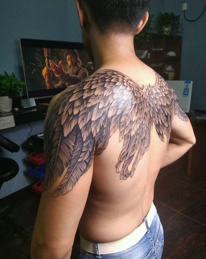 • 纹身吧推荐的披肩图腾半胛纹身图案作品展示