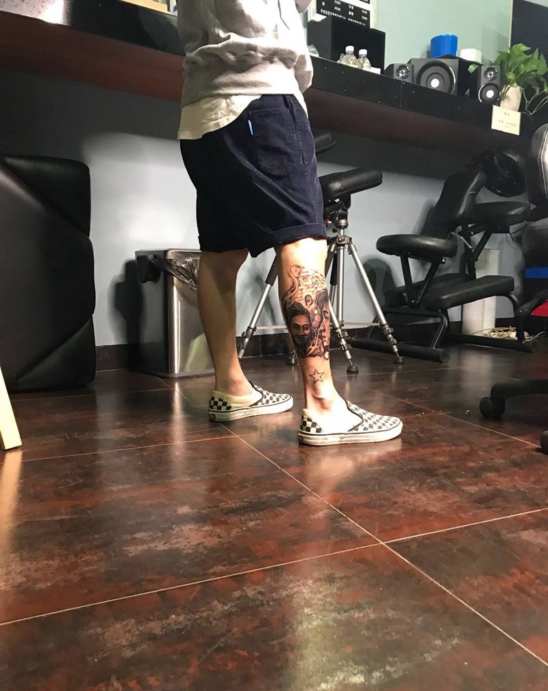 • T网红王老大花腿龙纹身图片_腿部新传统纹身图案