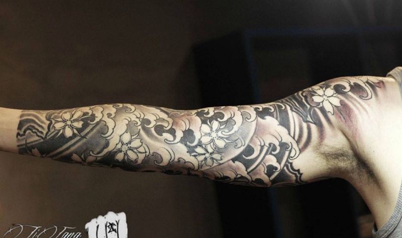 纯手绘浪臂完成纹身图片_成品手臂传统植物静物原创纹身图案