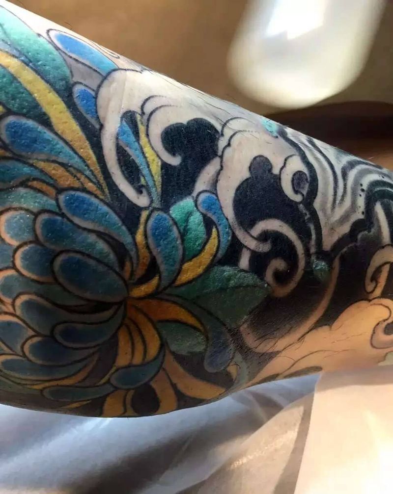 • T网红王老大花腿龙纹身图片_腿部新传统纹身图案