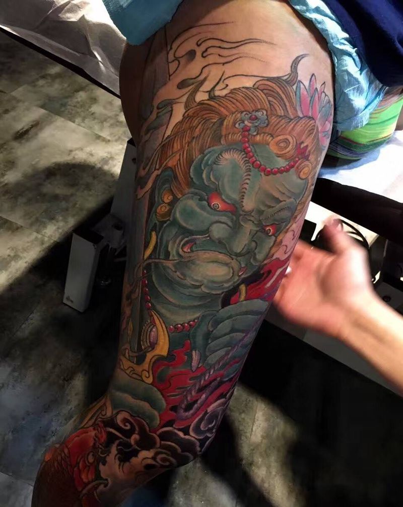 • T网红王老大花腿龙纹身图片_腿部新传统纹身图案