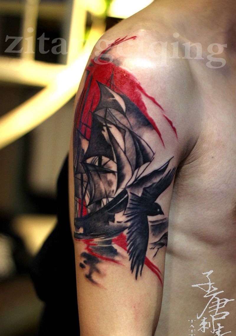 当前位置: 首页 >江苏省扬州市纹身店-囍欢刺青纹身图案>帆船纹身图片_成品手臂清新欧美静物动物纹身图案