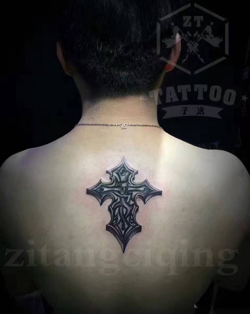 十字架修改纹身图片_成品背部宗教静物欧美纹身图案