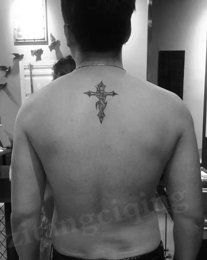十字架修改纹身图片_成品背部宗教静物欧美纹身图案