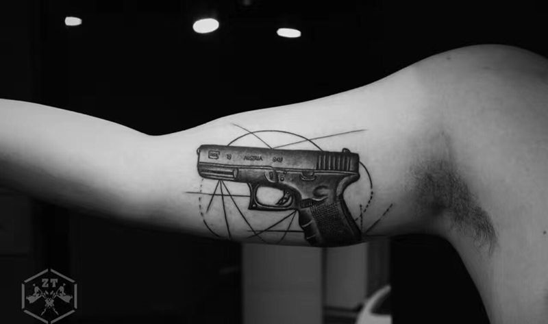 洛洛克手枪纹身图片_成品手臂写实静物纹身图案