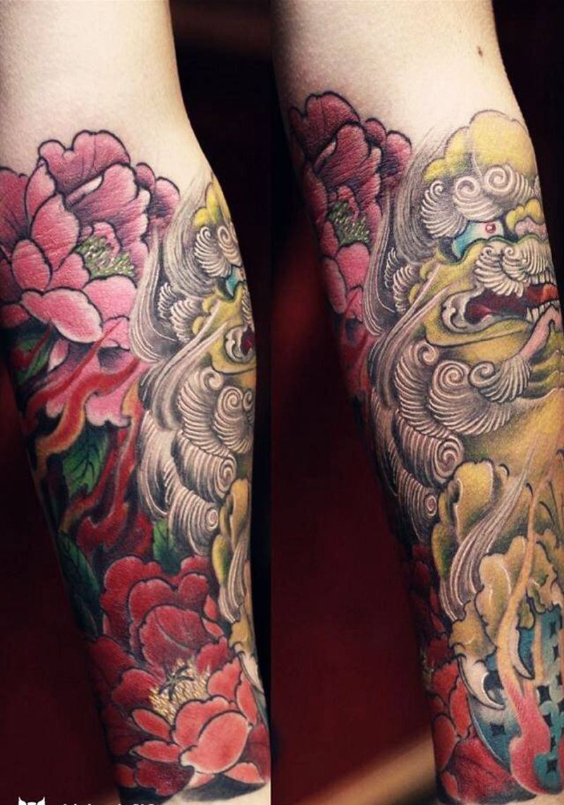 当前位置: 首页 >江苏省扬州市纹身店-G刺青纹身图案>彩色狮子包小臂纹身图片