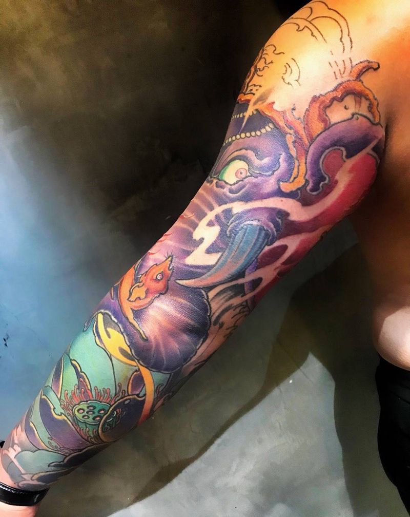 当前位置: 首页 >江苏省扬州市纹身店-G刺青纹身图案>象神花臂 未完纹身图片