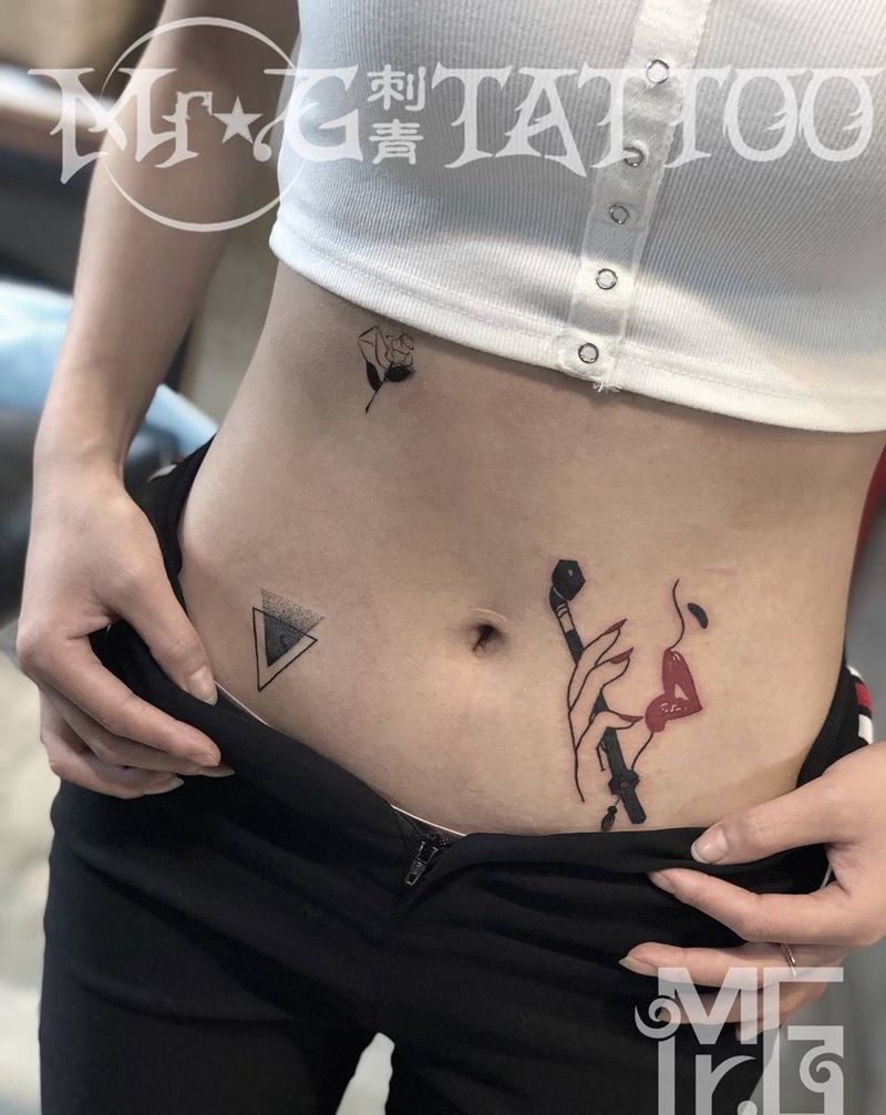 • T关于私处得爱!纹身图片_成品腹部清新字符图腾纹身图案