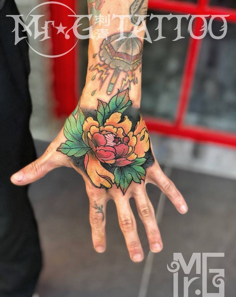 • 手背潮流时尚的玫瑰花眼睛纹身图案