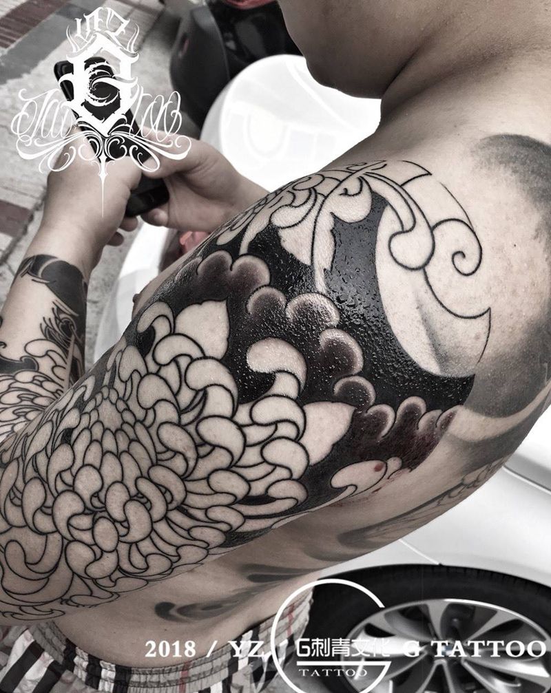 • 纹身吧推荐的披肩图腾半胛纹身图案作品展示