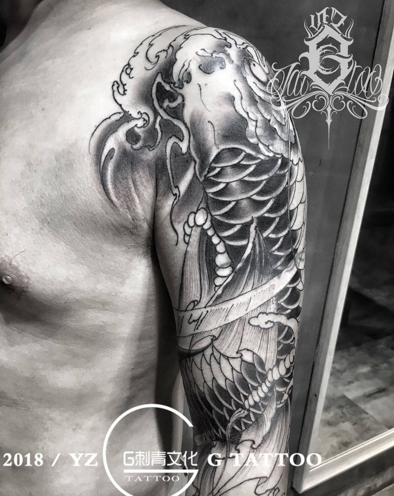 鲤鱼包花臂 覆盖进行/未完待续纹身图片