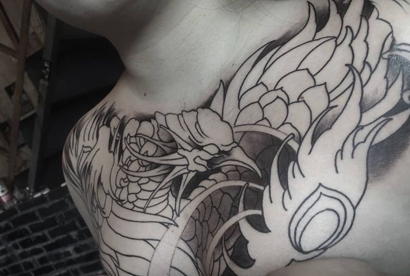 • 纹身吧推荐的披肩图腾半胛纹身图案作品展示