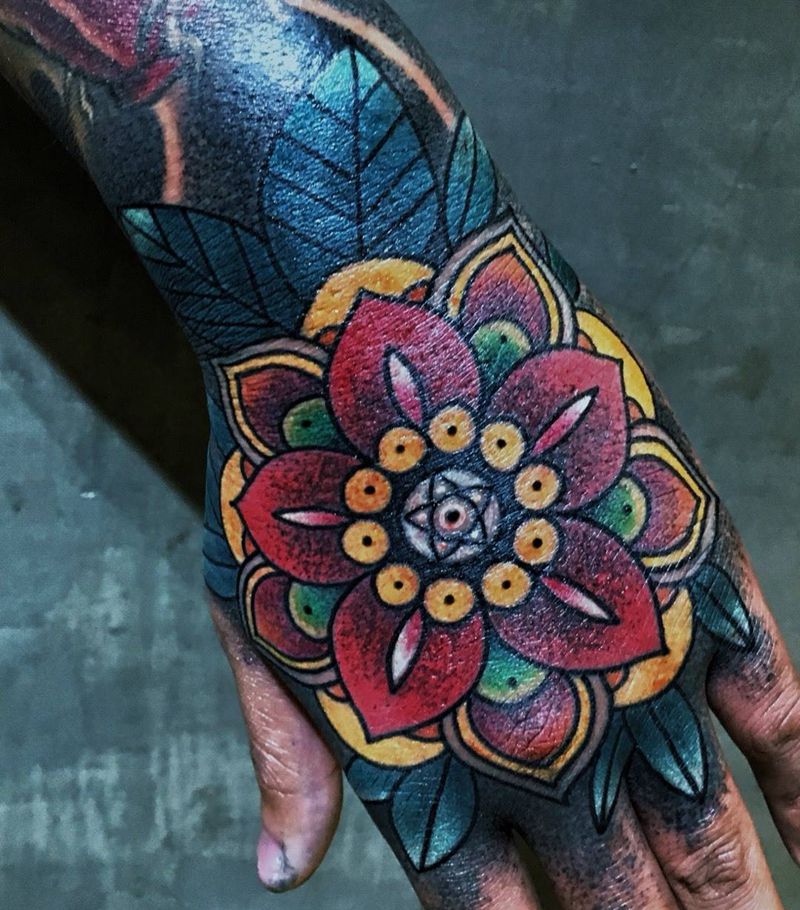 • 手背潮流时尚的玫瑰花眼睛纹身图案