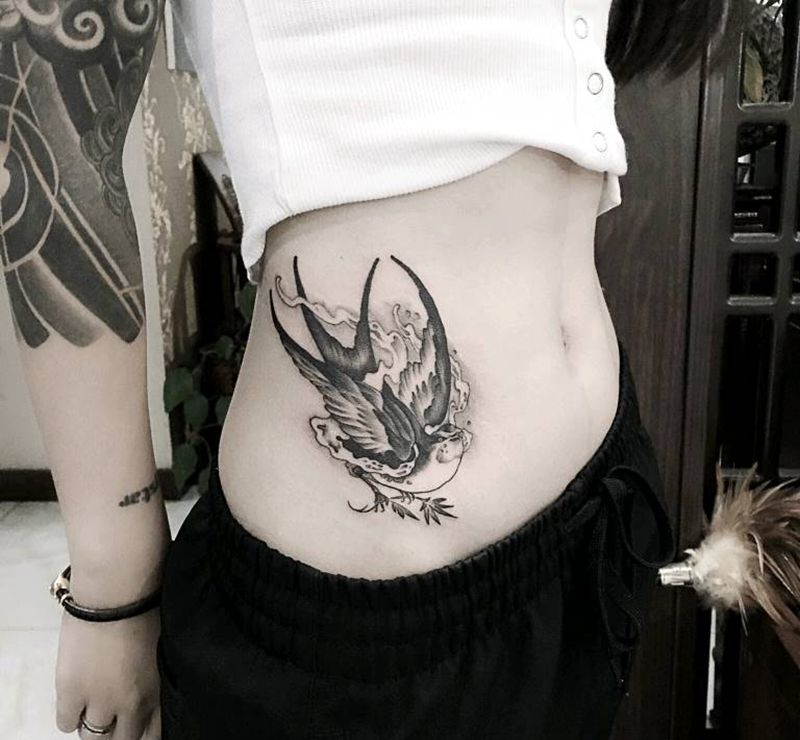 时尚性感的腹部莲花纹