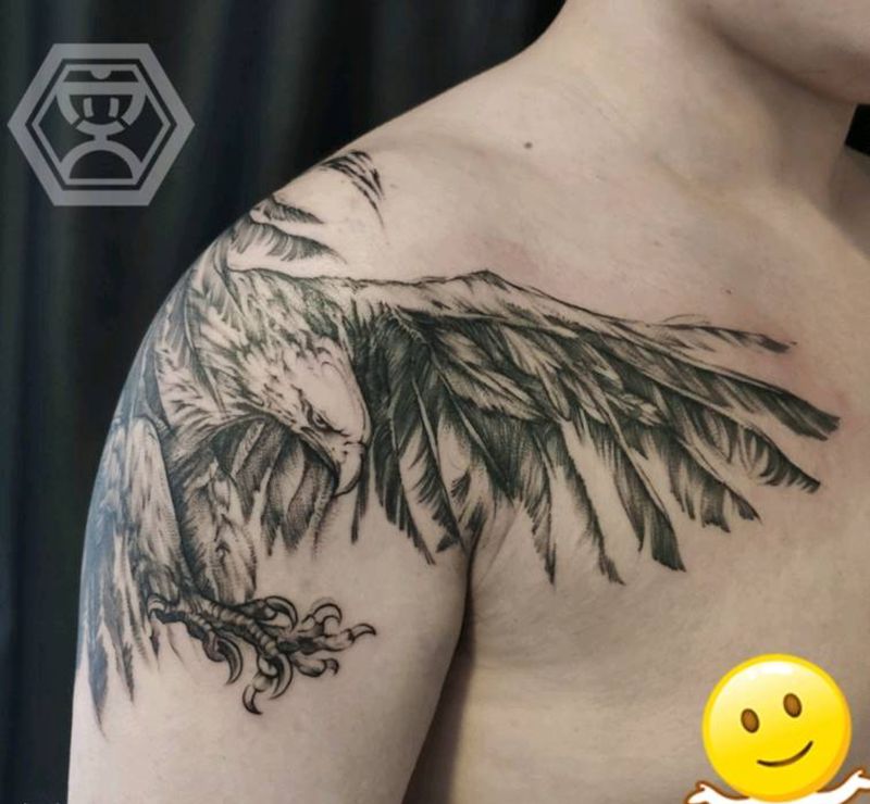 鹰击长空纹身图片_肩部点刺纹身图案