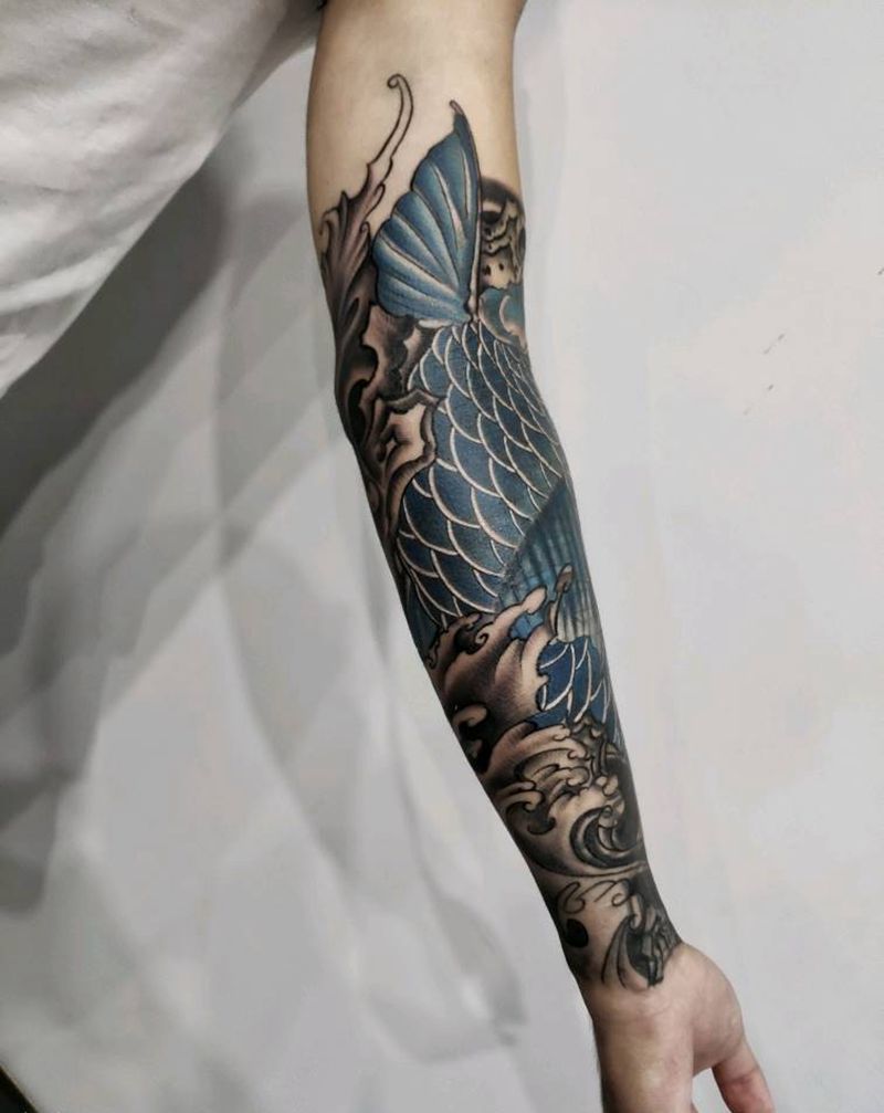 蓝鲤遮盖纹身图片_手臂新传统纹身图案