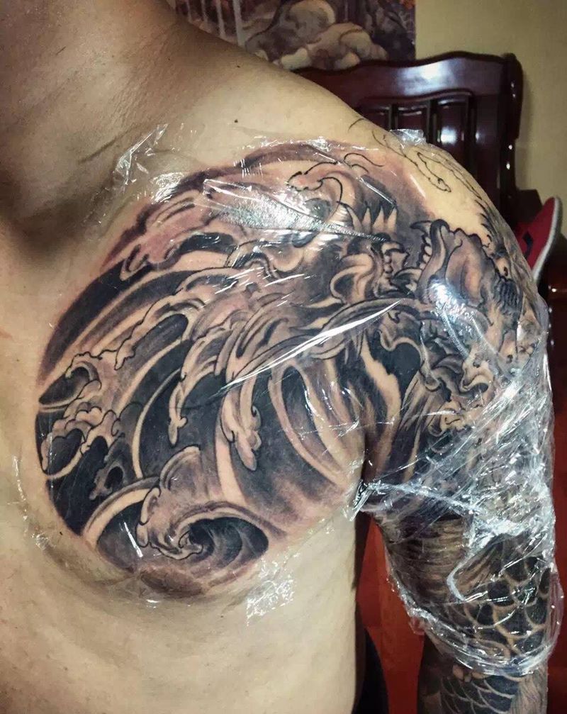 当前位置: 首页 >江苏省泰州市纹身店-藤吉刺青处纹身图案>花臂傲鱼纹身图片