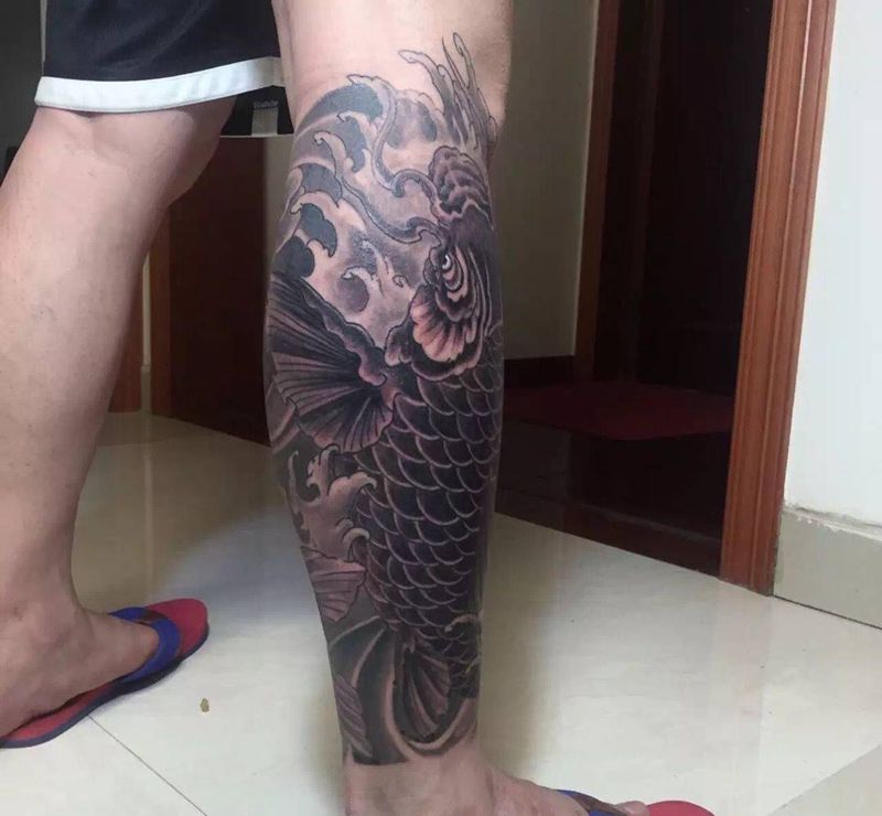 当前位置: 首页 >江苏省泰州市纹身店-藤吉刺青处纹身图案>包小腿鲤鱼纹身图片