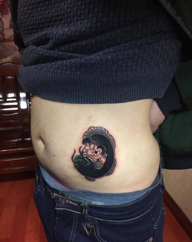 当前位置: 首页 >江苏省泰州市纹身店-藤吉刺青处纹身图案>不倒翁纹身图片_腹部传统人物成品手稿纹身图案