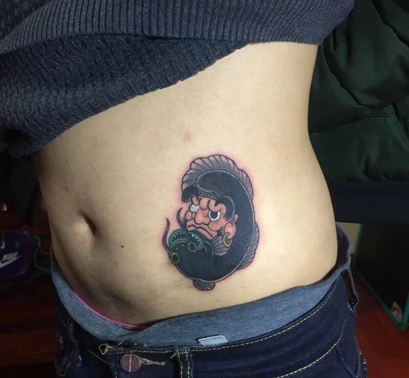 当前位置: 首页 >江苏省泰州市纹身店-藤吉刺青处纹身图案>不倒翁纹身图片_腹部传统人物成品手稿纹身图案