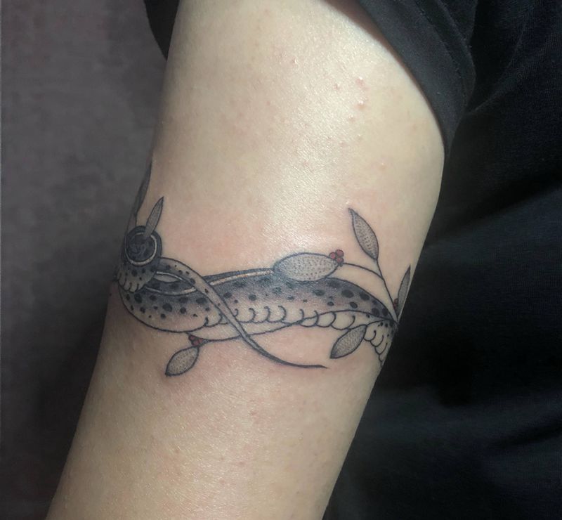 原创蛇环纹身图片_手臂老传统点刺纹身图案