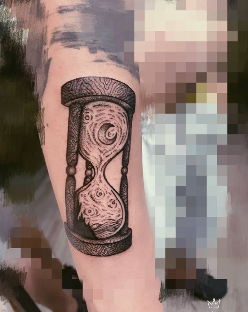 沙漏纹身图片_手臂点刺沙漏纹身图案