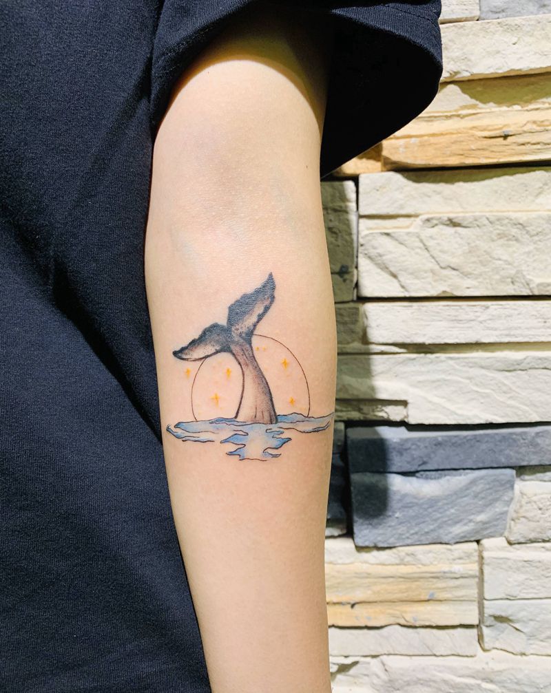 当前位置: 首页 >江苏省镇江市纹身店-三清斋刺青纹身图案>鲸鱼尾纹身图片_手臂水彩鲸鱼纹身图案