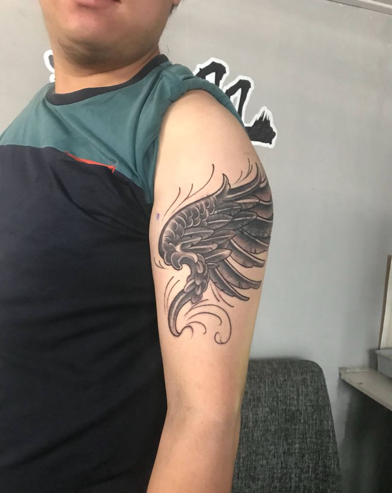 • 纹身吧推荐的披肩图腾半胛纹身图案作品展示