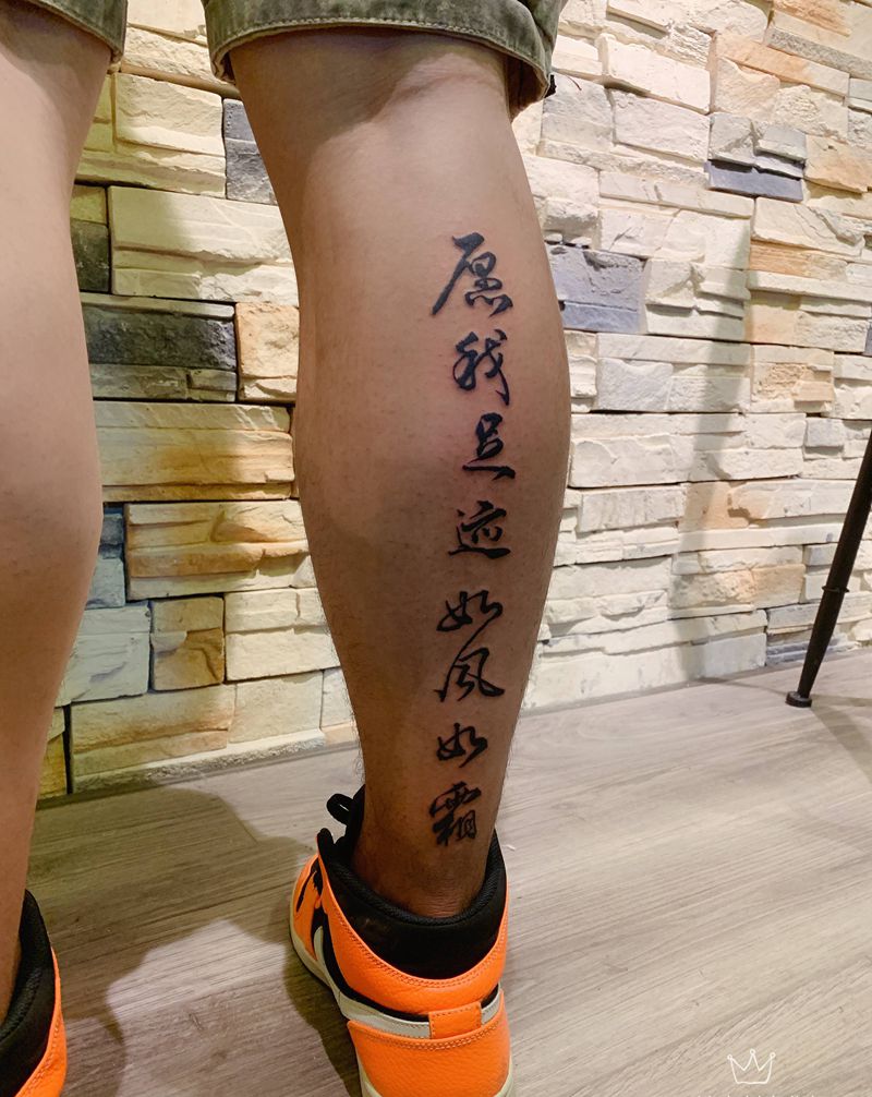 当前位置: 首页 >江苏省镇江市纹身店-三清斋刺青纹身图案>水墨书法纹身图片_腿部水墨书法纹身图案
