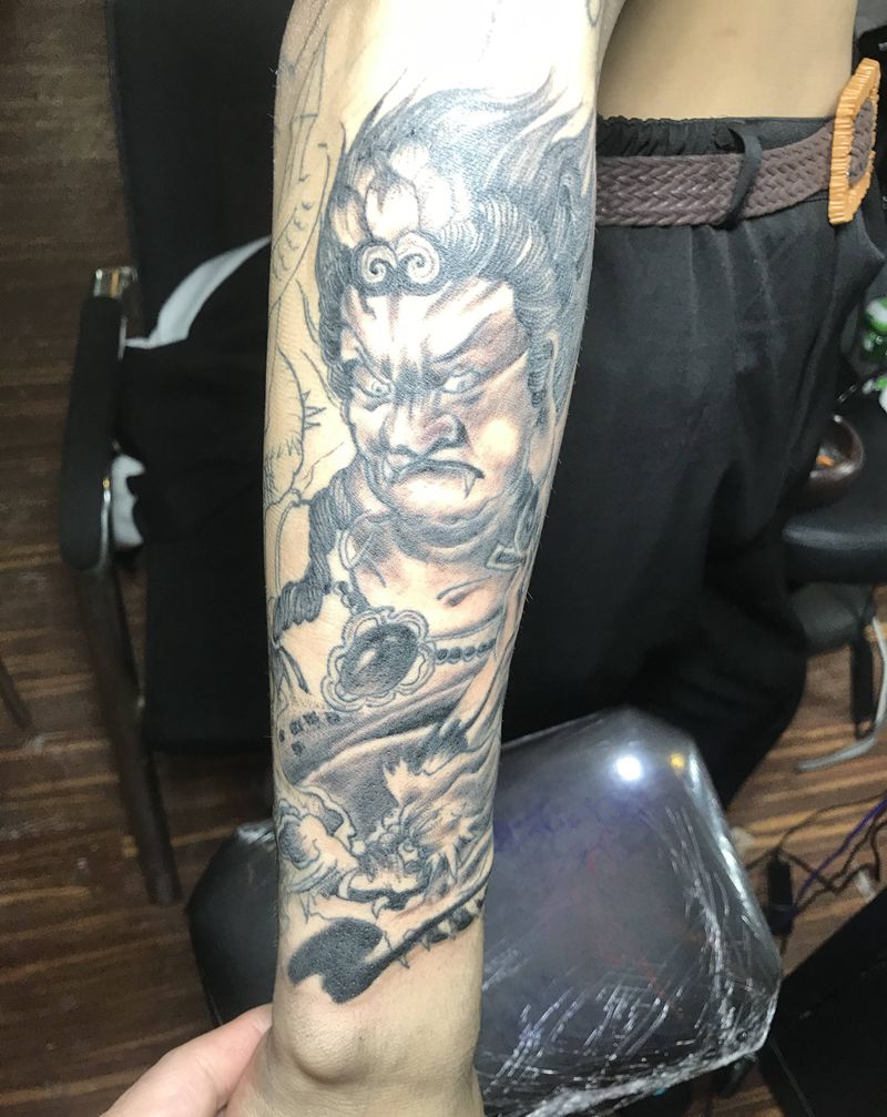 当前位置: 首页 >江苏省扬州市纹身店-扬州纹名刺青纹身图案>不动明王纹身图片_手臂新传统欧美写实纹身图案