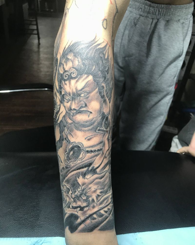 当前位置: 首页 >江苏省扬州市纹身店-扬州纹名刺青纹身图案>不动明王纹身图片_手臂新传统欧美写实纹身图案