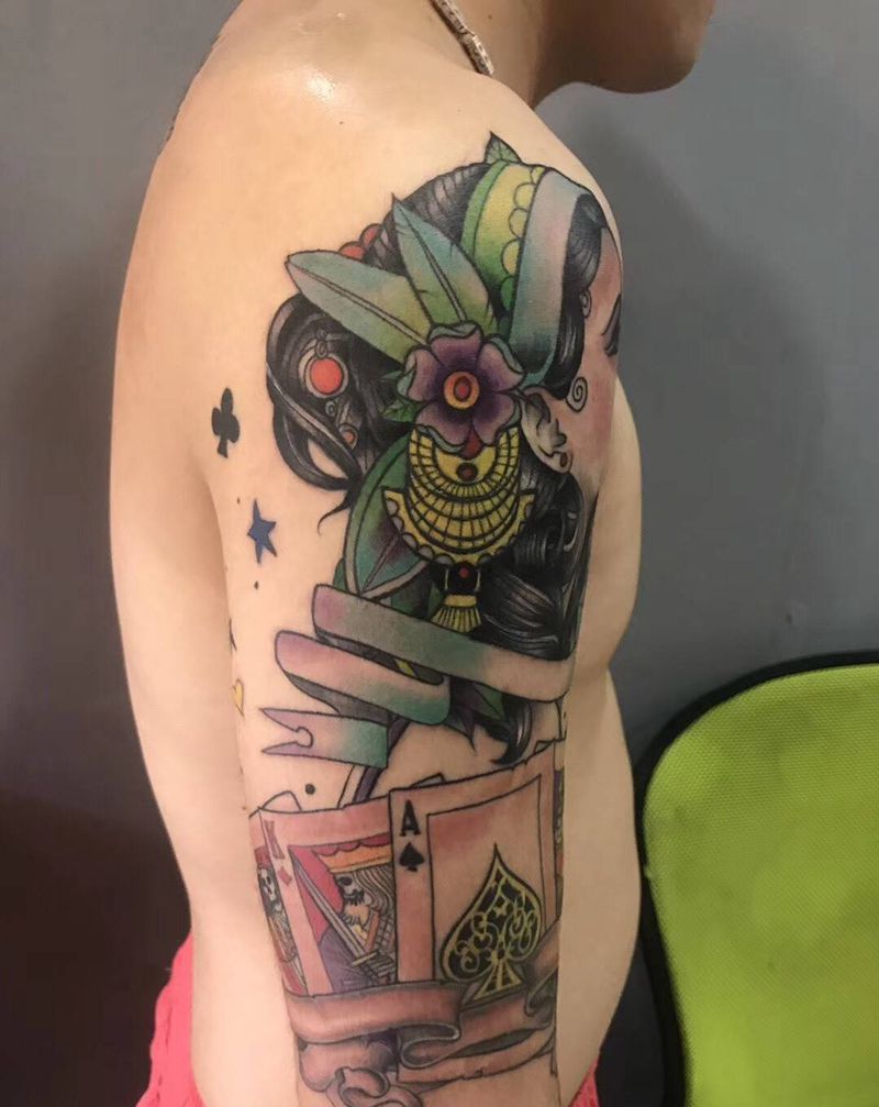 • 纹身吧推荐的披肩图腾半胛纹身图案作品展示